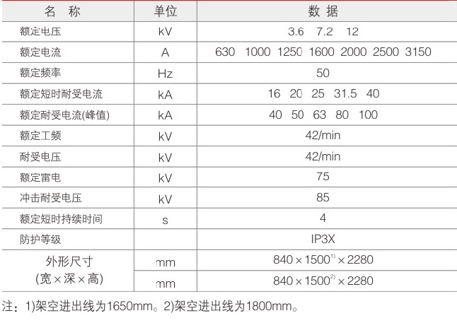 用于3-10kV交流50Hz額定電流為630-3150A